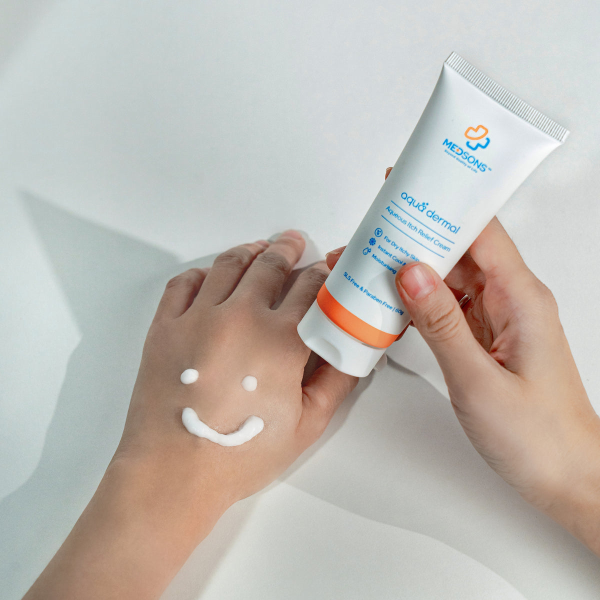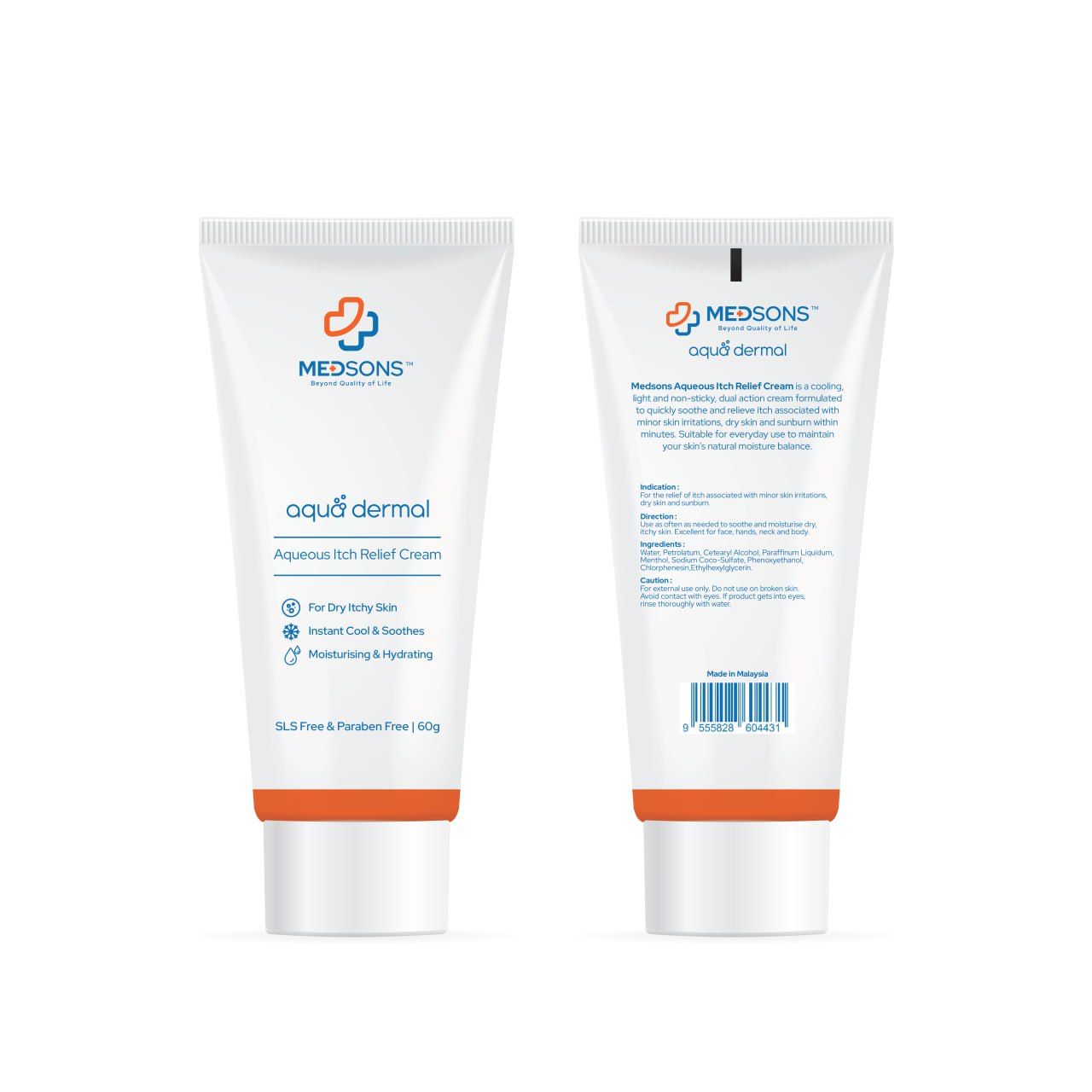 DESCRIPTION: Medsons Aqua Dermal Aqua Itch Relief Cream instantly cools and relieves itchy skin while moisturises and rehydrates. It is suitable to use for the relief of itch associated with minor skin irritations and dry skin. Medsons Aqua Itch Relief Cream is free from SLS , paraben and perfume. Medsons Aqua Itch Relief Cream is suitable for children 2 years and above. For best results, use Medsons Basic Aqua Cream as your daily cream cleanser and as a soap substitute.